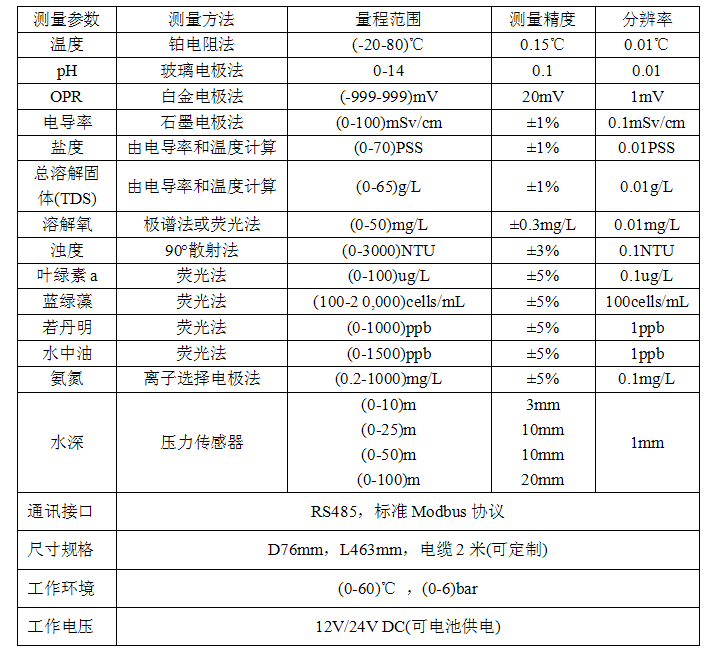 點(diǎn)創(chuàng)DCT-MWQ-5100/5101電極式多參數(shù)水質(zhì)監(jiān)測儀,可自由組合安裝2-12個(gè)水質(zhì)傳感器,監(jiān)測因子包括:溫度、pH、ORP、電導(dǎo)率、鹽度、總?cè)芙夤腆w、溶解氧、濁度、葉綠素a、藍(lán)綠藻、若丹明、水中油、氨氮、深度等。采用RS485接口和標(biāo)準(zhǔn)Modbus協(xié)議,功耗低,可內(nèi)置電池,支持太陽能供電。DCT-MWQ-5101較5100使用更優(yōu)性能電極,壽命更長,可工作在多種惡劣環(huán)境下。